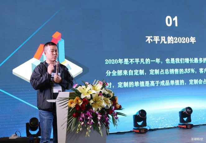 华灯璀璨的开场仪式,点燃了现场如火如荼的气氛。HTH.COM-华体会huatihui(中国)集团集团营销总经理陈玉伟先生对晚会进行了主题发言,他对2020年的营销工作进行了总结,并着重从营销工作部署、重点项目开展、产品整合、拎包帮扶、渠道运营和移动+定制整装优势等方面对2021年的营销工作做了全面的统筹规划。同时,他还讲解了“美国梦凯莎床垫”新品的产品工艺、市场优势、产品定位,使经销商对我们的新产品拥有更深入的认识和了解。